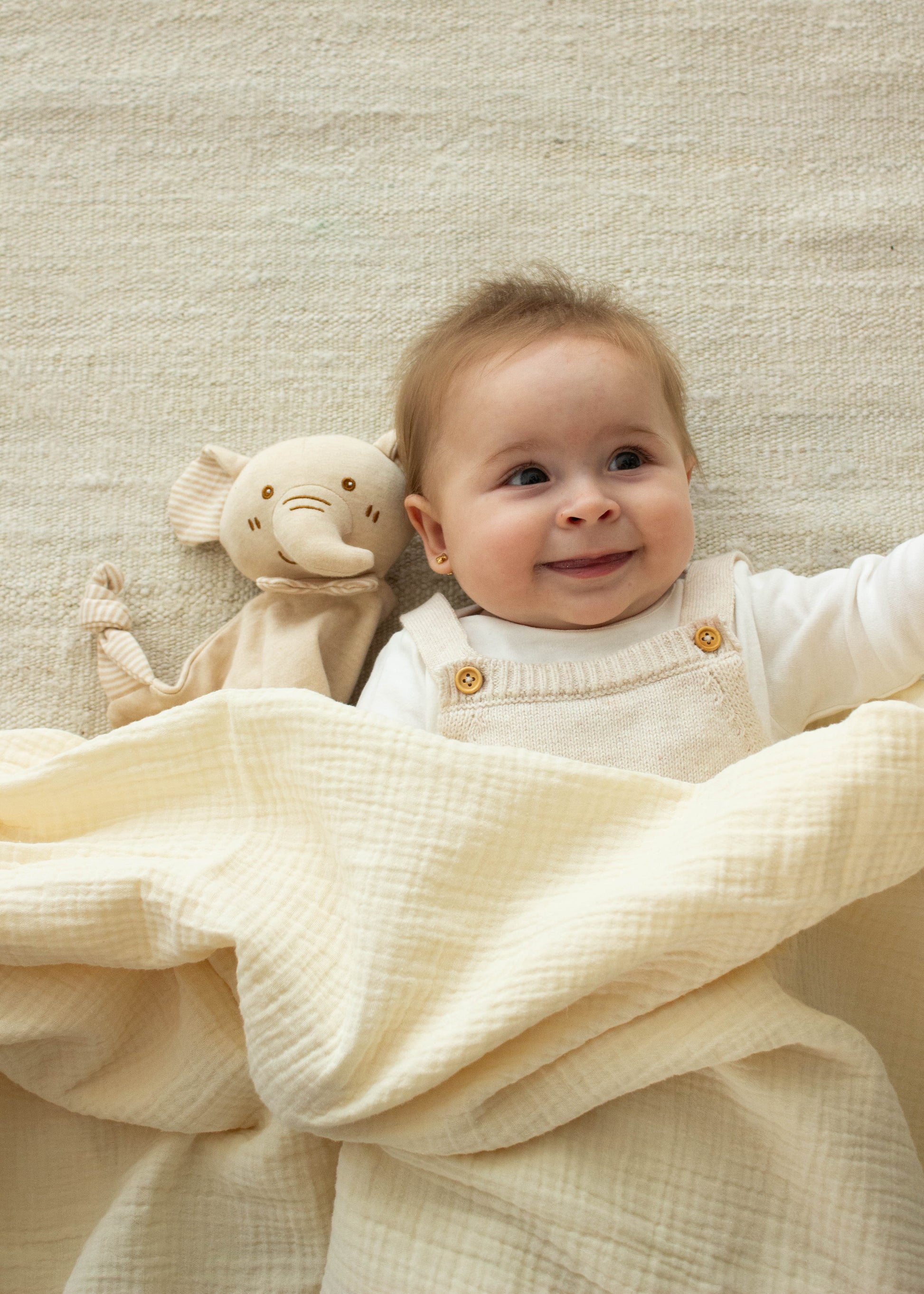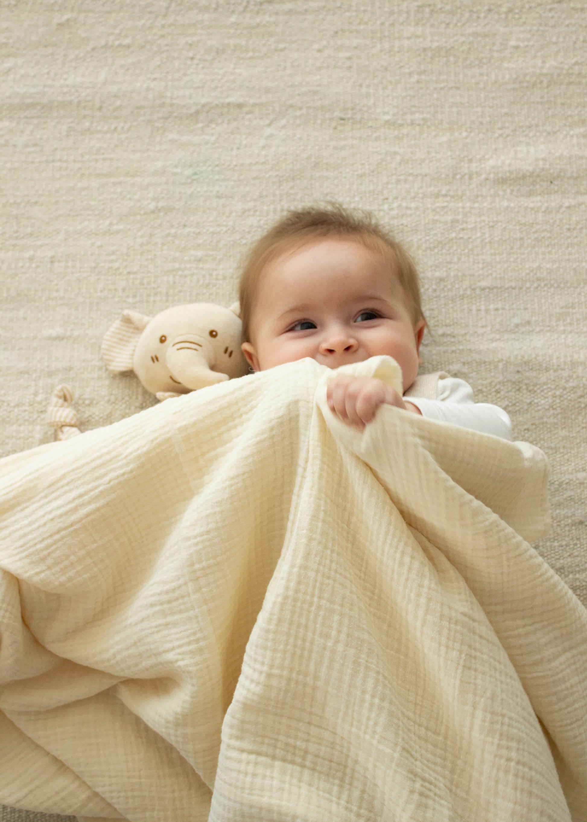Retiene el olor de los papás, ayudando a que el bebé se sienta acompañado y protegido mientras duerme. Para bebés a partir de 4-6 meses: